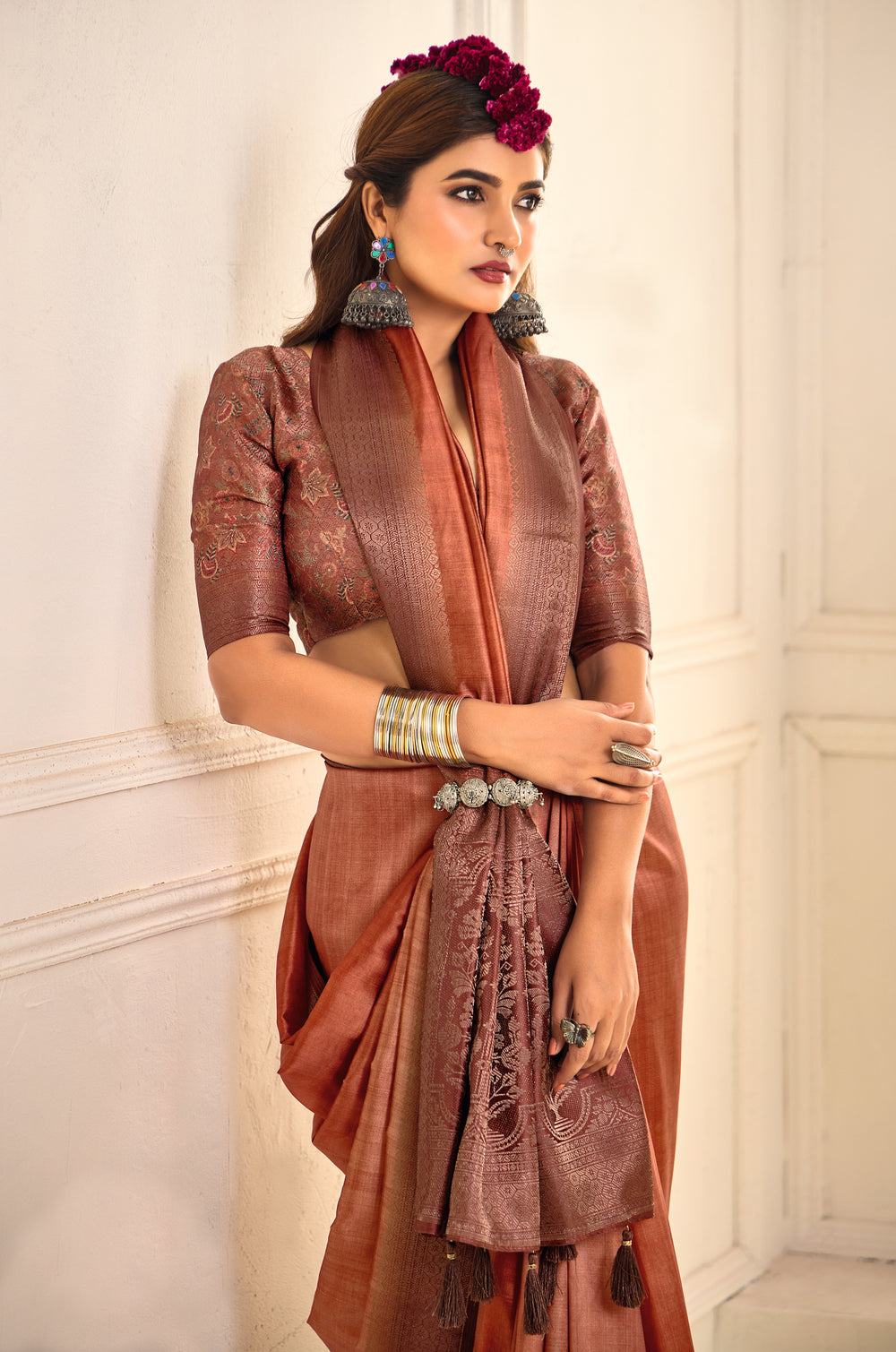 Fabric - Saree: Tussar Silk, Blouse: Art Silk
