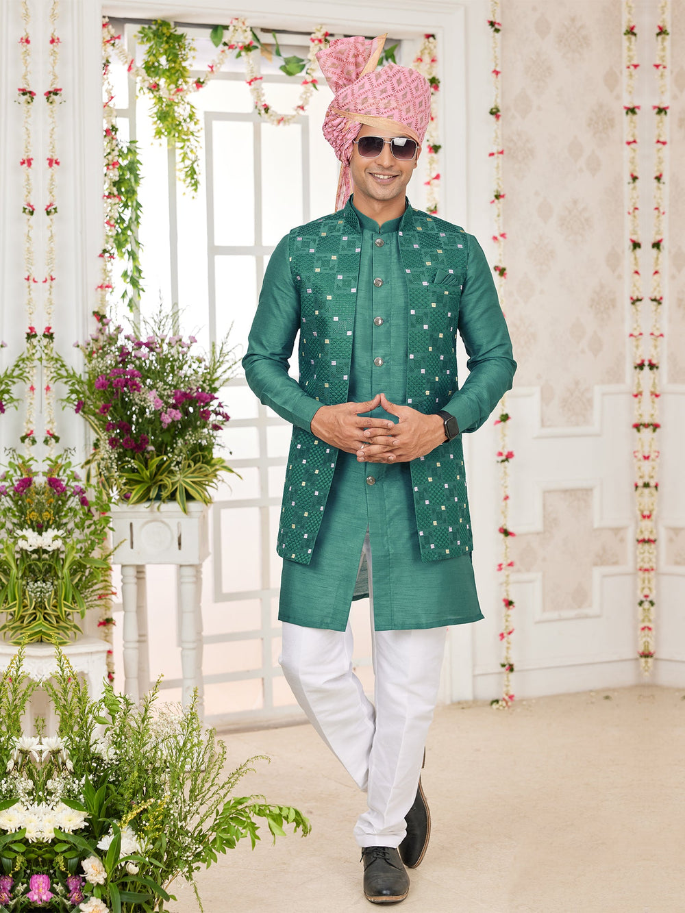 Fabric - Kurta - Art Banarasi Silk, Pajama - Art Silk, Jacket - Art Banarasi Silk