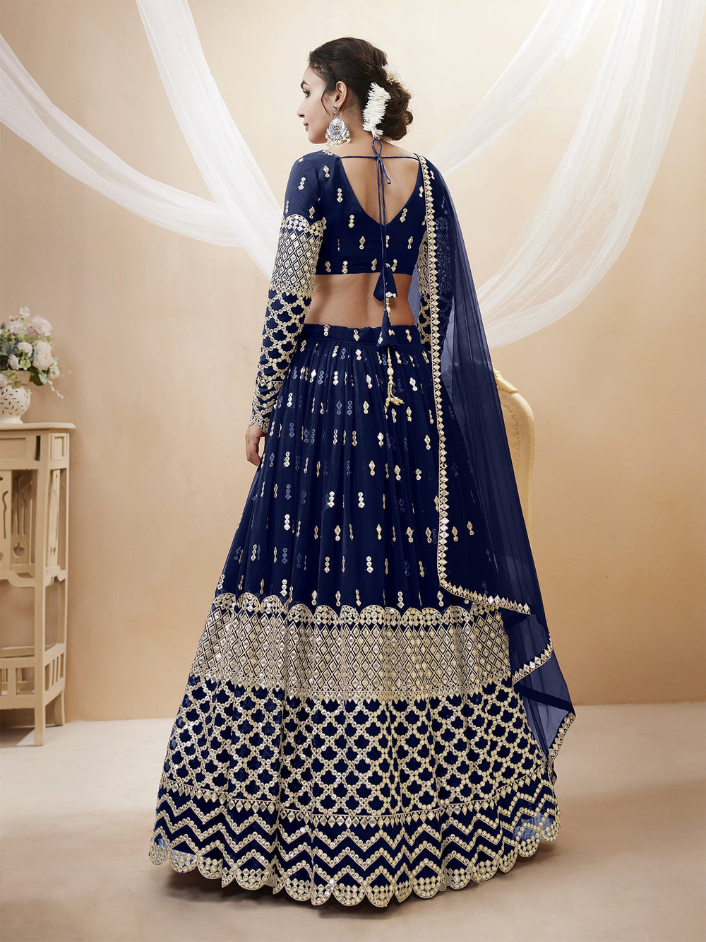 Color - Lehenga - Navy Blue, Choli - Navy Blue, Dupatta - Navy Blue