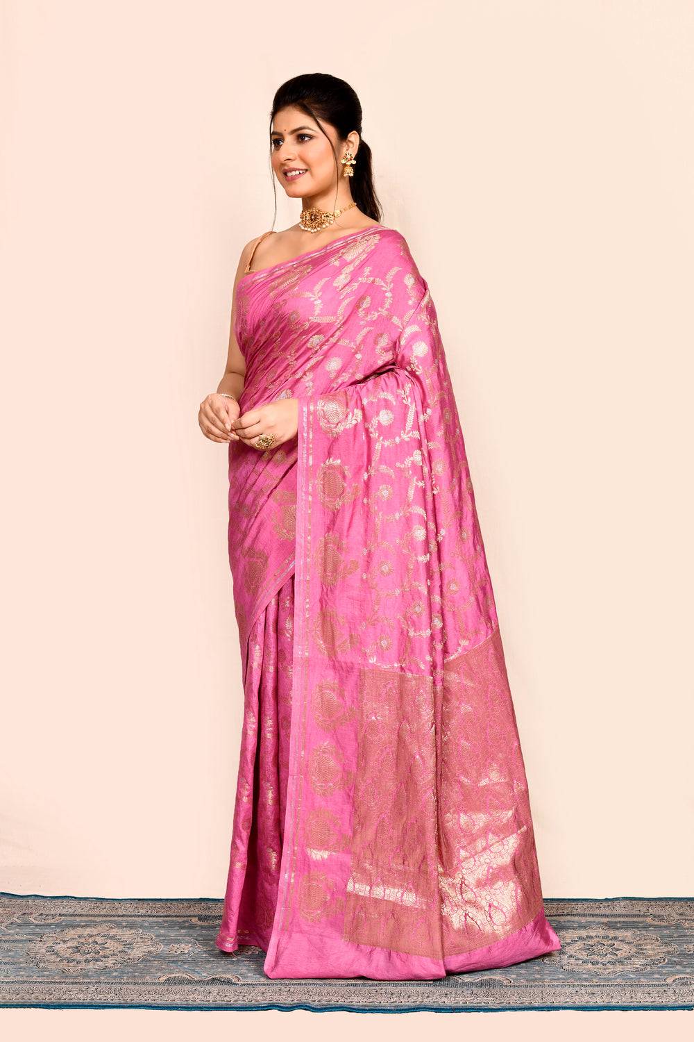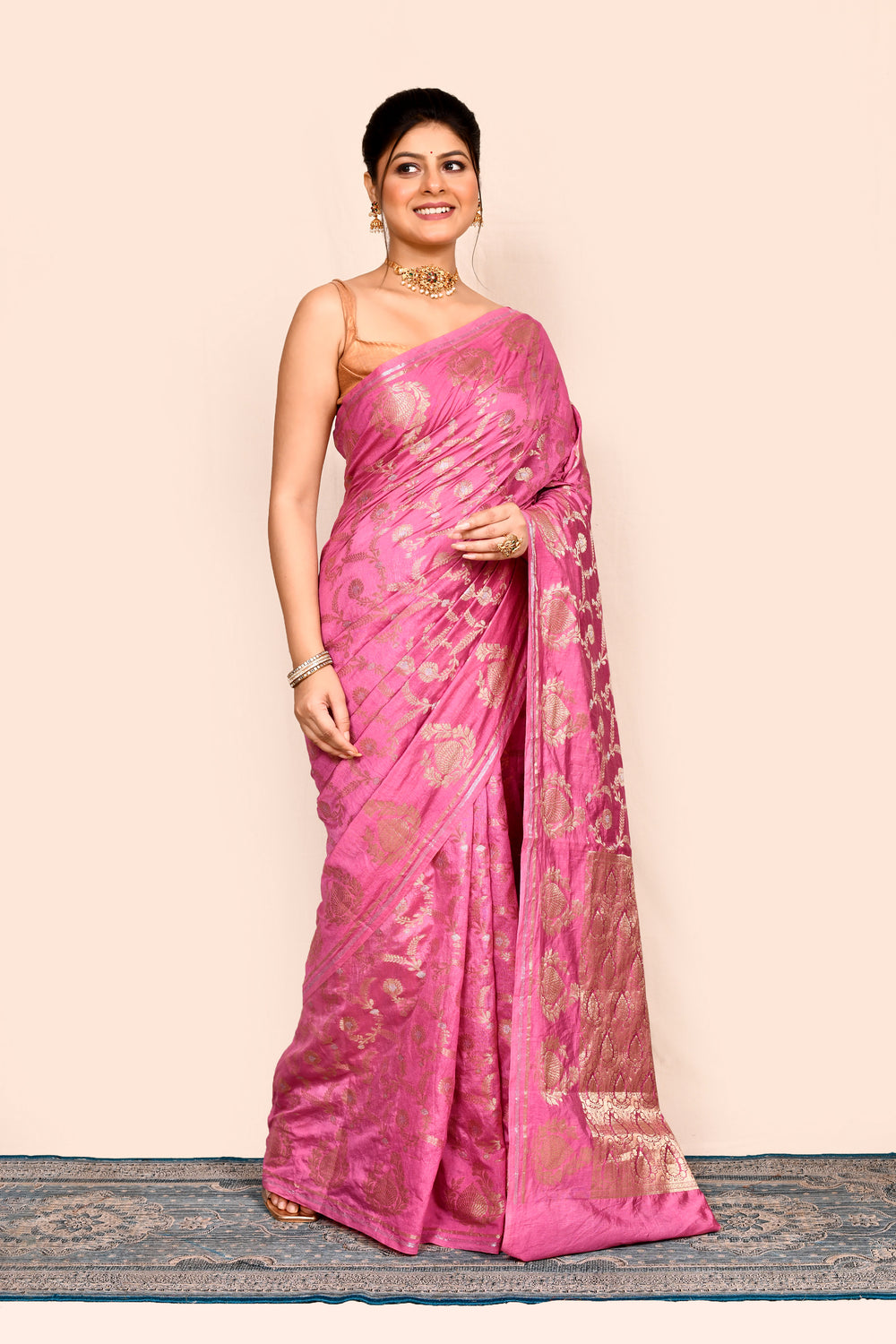 Color - Saree: Pink, Blouse: Beige