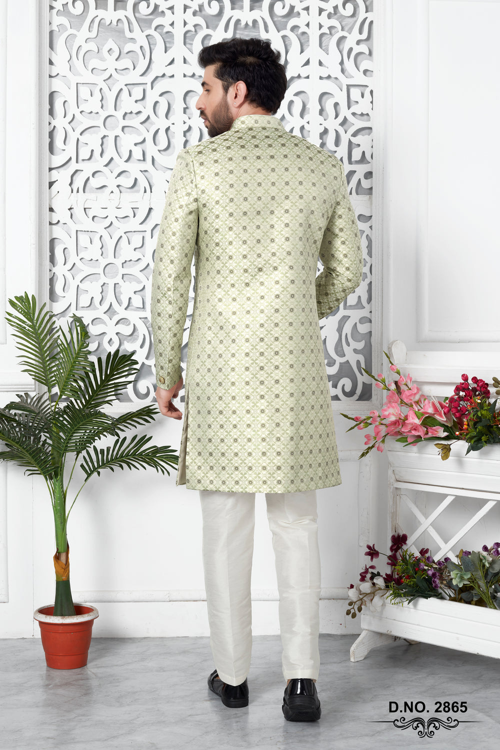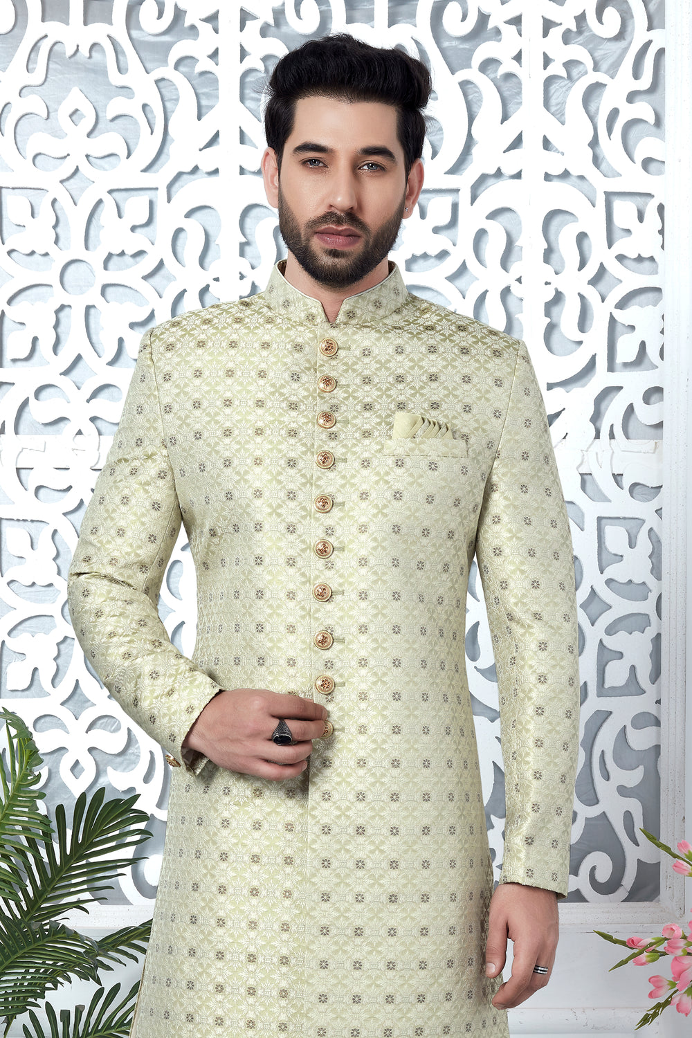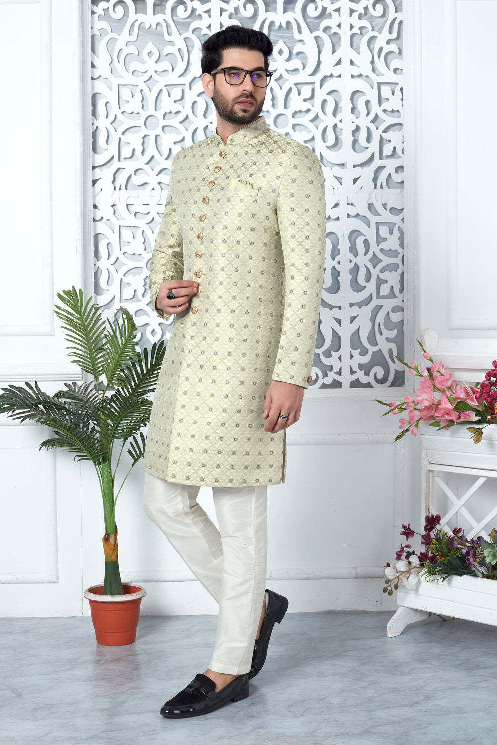Pista Green Indo Western Sherwani In Silk