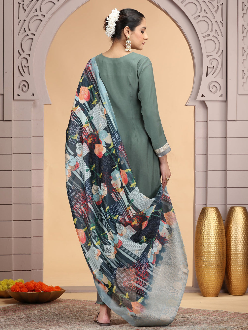 Color - Kameez: Pista Green, Salwar: Pista Green, Dupatta: Pista Green