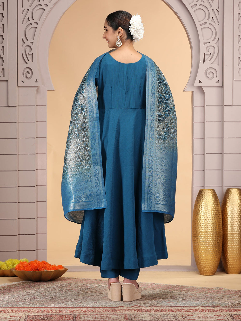 Color - Kameez: Blue, Salwar: Blue, Dupatta: Blue