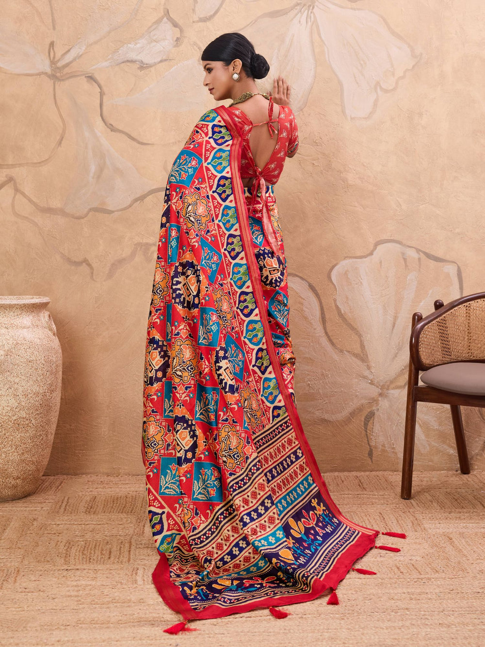 Color - Saree: Red, Blouse: Red